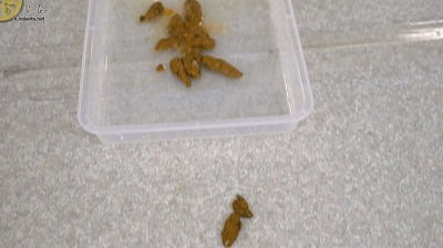 細かいウンコがボロボロと、次から次へと産まれた。立ってウンコなので、受け皿からはみ出た大便もある。